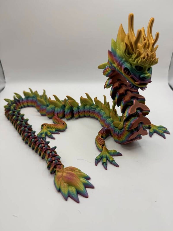 A mesmerizing 3D printed dragon with a fully articulated body and stunning rainbow gradient finish. Perfect for display, play, or gifting—this dragon adds a magical splash of color to any space.