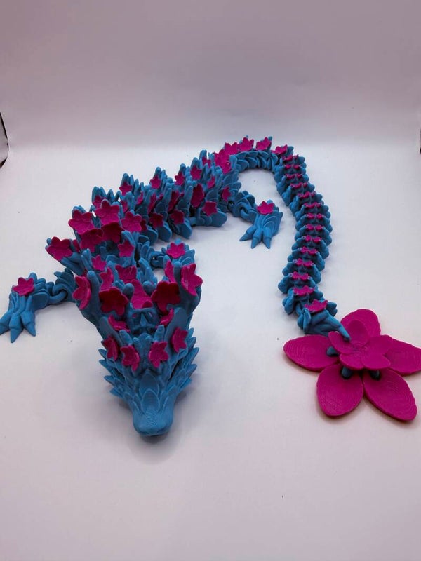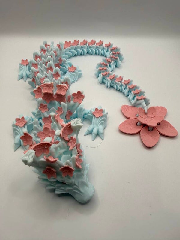 Graceful and enchanting, our Cherry Blossom Dragon captures the beauty of spring in a mythical form. Adorned with delicate pink blossoms along its elegant white body, this 3D-printed creation is both a symbol of strength and a celebration of nature’s fleeting beauty. Perfect as a display piece or a thoughtful gift, it brings a serene yet majestic charm to any space.