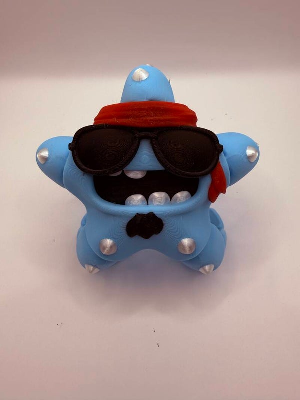 Bring home some ocean fun with this playful 3D-printed Starfish! Featuring sunglasses, a bandana, and a big smile, this unique design is flexible and posable, making it perfect as a desk buddy, toy, or conversation starter. Made with durable, high-quality filament, it’s both sturdy and fun to handle. Great for kids, collectors, and anyone who loves quirky ocean-themed décor!
